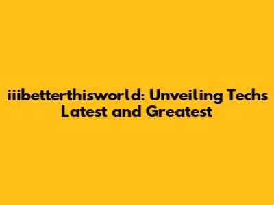 Iiibetterthisworld: Tech News & Insights