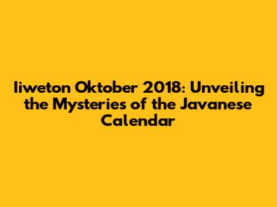 Hey guys! Ever heard of iiweton? It's a fascinating part of the Javanese calendar, deeply rooted in tradition and brimming with cultural significance. Specifically, we're diving into iiweton Oktober 2018. This isn't just some random date; it's a specific period loaded with meaning for those who follow the Javanese primbon. Understanding iiweton Oktober 2018 involves looking at the unique combination of days and their associated characteristics. The Javanese calendar, unlike the Gregorian calendar we commonly use, operates on a five-day week called the Pasaran and a seven-day week similar to ours. When these cycles intertwine, they create unique combinations that determine a person's weton, which is essentially their birthdate according to this system. This weton is believed to influence personality, destiny, and compatibility with others. So, if you're curious about Javanese astrology or just want to learn something new about a rich cultural tradition, stick around as we unpack the details of iiweton Oktober 2018!