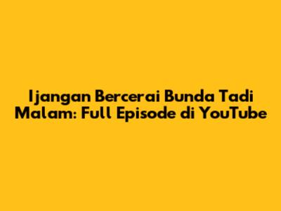 Ijangan Bercerai Bunda Tadi Malam: Full Episode Di YouTube
