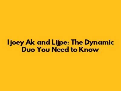 Ijoey Ak And Lijpe: The Dynamic Duo You Need To Know