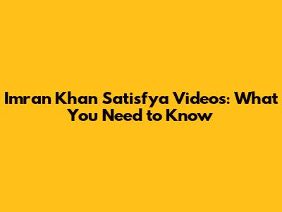 Imran Khan Satisfya Videos: What You Need To Know