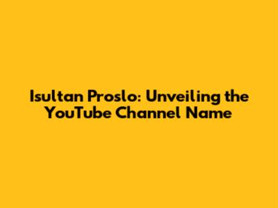 Isultan Proslo: Discovering The YouTube Channel Name