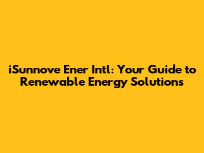 ISunnove Ener Intl: Your Guide To Renewable Energy Solutions