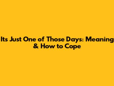 It's Just One Of Those Days: Meaning & How To Cope