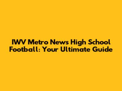 IWV Metro News High School Football: Your Ultimate Guide