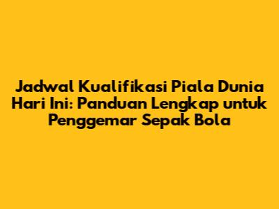 Kualifikasi Piala Dunia adalah momen yang sangat dinantikan oleh para penggemar sepak bola di seluruh dunia. Dengan mengikuti jadwal kualifikasi Piala Dunia hari ini, kalian dapat menikmati aksi sepak bola terbaik dari seluruh dunia, mendukung tim favorit kalian, dan merasakan euforia sepak bola. Pastikan kalian mendapatkan informasi terbaru mengenai jadwal pertandingan, analisis, dan prediksi. Jangan ragu untuk bergabung dengan komunitas penggemar sepak bola dan berbagi pengalaman kalian. Nikmati setiap momen pertandingan dan jangan lewatkan satu pun aksi seru dari kualifikasi Piala Dunia!