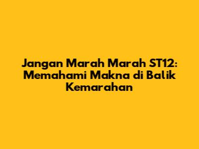 Jangan Marah Marah ST12 adalah lagu yang lebih dari sekadar hiburan. Lagu ini adalah pengingat akan pentingnya mengelola emosi. Liriknya yang sederhana namun penuh makna, serta musiknya yang easy listening, membuat lagu ini mudah diterima oleh berbagai kalangan. Melalui lagu ini, ST12 ingin menyampaikan pesan bahwa kemarahan adalah hal yang wajar, namun jangan sampai menguasai diri kita.
