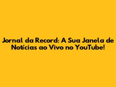 Jornal Da Record: Assista Ao Vivo No YouTube!