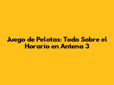 隆Amigos, para no perdernos nada de Juego de Pelotas, es clave estar bien informados sobre el horario de emisi贸n en Antena 3! Mantenerse al d铆a no es complicado, y aqu铆 les dejo algunos consejos para que no se pierdan ni un solo minuto de este emocionante programa. Ya saben, la clave est谩 en la organizaci贸n y en saber d贸nde buscar la informaci贸n correcta. 隆Vamos a ello!