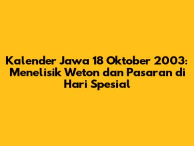 Kalender Jawa 18 Oktober 2003: Weton Dan Pasaran