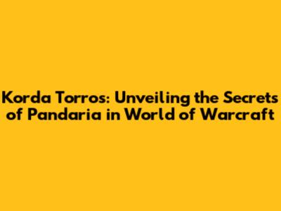 Korda Torros: A Deep Dive Into Pandaria's World Of Warcraft