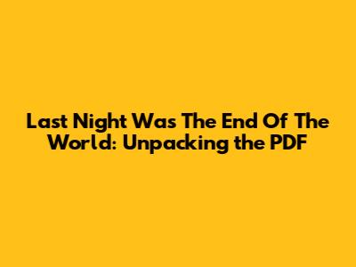 Hey everyone! Ever stumbled upon something that just grabs you? Well, that's what happened when I came across "Last Night Was The End Of The World" – a title that's both intriguing and a little bit unsettling. And of course, being the curious type, I went searching for the PDF. So, what's this all about? Let's dive in, shall we? This article is your go-to guide for everything related to this enigmatic title. We'll explore the possible meanings, the context in which it might be used, and what you might expect to find within a document (if you can find one, of course!).