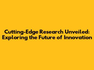 Latest Breakthroughs: Cutting-Edge Research Unveiled