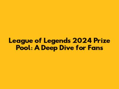 League Of Legends 2024 Prize Pool: What You Need To Know