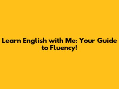 Learn English With Me: Your Guide To Fluency!