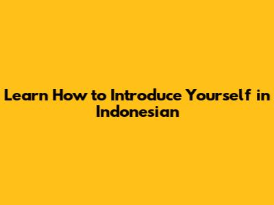 Learn How To Introduce Yourself In Indonesian