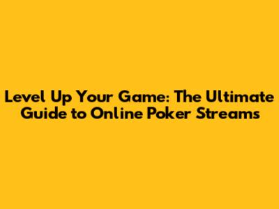 Level Up Your Game: The Ultimate Guide To Online Poker Streams