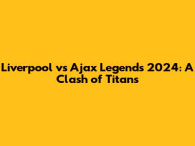 Liverpool Vs Ajax Legends 2024: Match Preview & Lineups