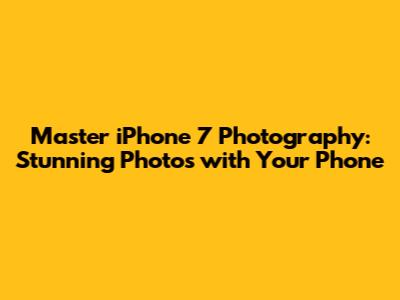 Master IPhone 7 Photography: Stunning Photos With Your Phone