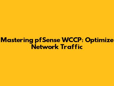 Mastering PfSense WCCP: Optimize Network Traffic