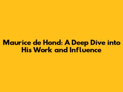 Maurice De Hond: A Deep Dive Into His Work And Influence