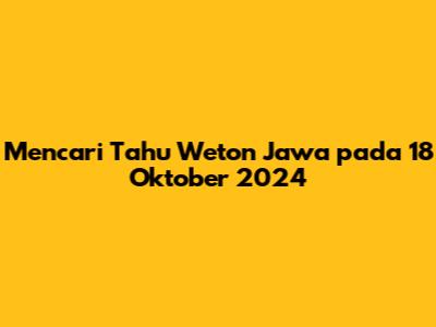 Mencari Tahu Weton Jawa Pada 18 Oktober 2024