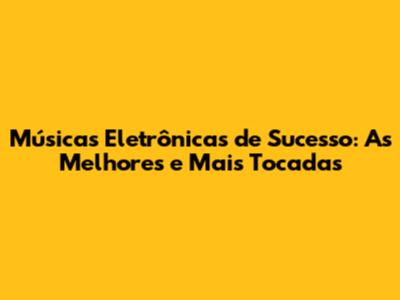 Músicas Eletrônicas De Sucesso: As Melhores E Mais Tocadas