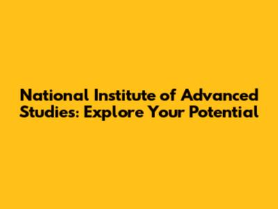 National Institute Of Advanced Studies: Explore Your Potential