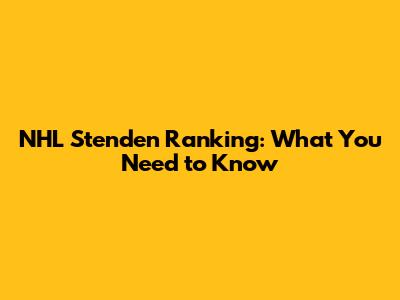 NHL Stenden Ranking: What You Need To Know