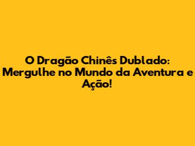 O Dragão Chinês Dublado: Aventura E Ação Para Você!