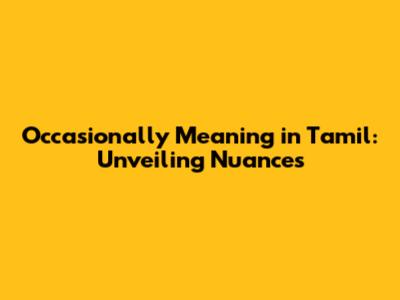 Occasionally Meaning In Tamil: Unveiling Nuances