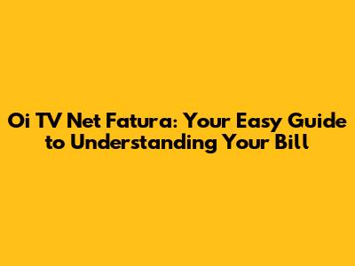 Oi TV Net Fatura: Your Easy Guide To Understanding Your Bill