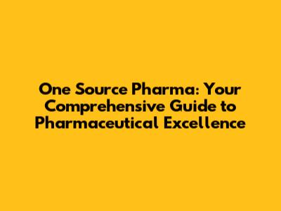 One Source Pharma: Your Comprehensive Guide
