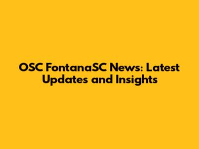 OSC FontanaSC News: Latest Updates And Insights