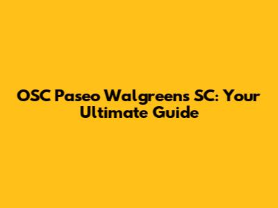 OSC Paseo Walgreens SC: Your Go-To Guide