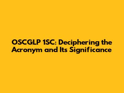 OSCGLP 1SC: Deciphering The Acronym And Its Significance