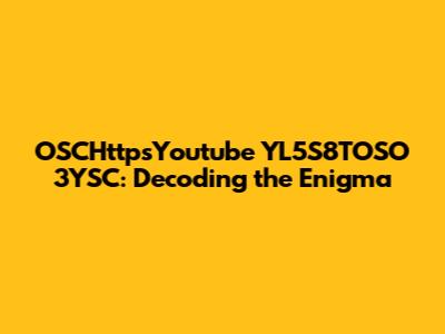 OSCHttpsYoutube YL5S8TOSO 3YSC: Decoding The Enigma