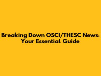 Breaking Down OSCI/THESC News: Your Essential Guide