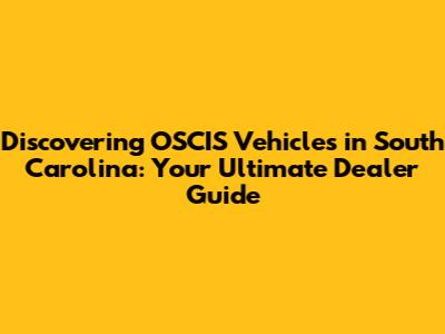 Discovering OSCIS Vehicles in South Carolina: Your Ultimate Dealer Guide