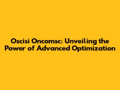 Oscisi Oncomsc: Unveiling The Power Of Advanced Optimization
