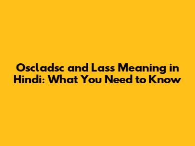 Oscladsc And Lass Meaning In Hindi: What You Need To Know