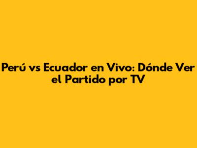 Perú Vs Ecuador En Vivo: Dónde Ver El Partido Por TV