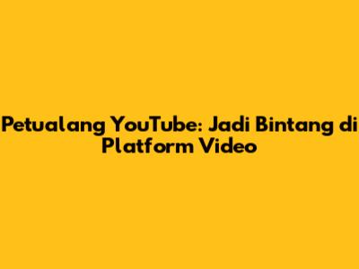 Petualang YouTube: Jadi Bintang Di Platform Video