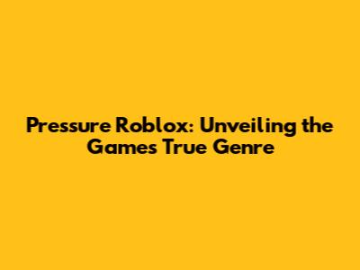 Pressure Roblox: Unveiling The Game's True Genre
