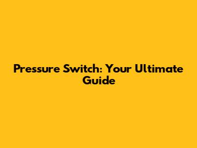 Pressure Switch: Your Ultimate Guide