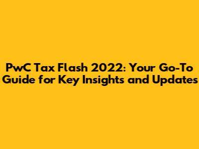 PwC Tax Flash 2022: Key Insights & Updates