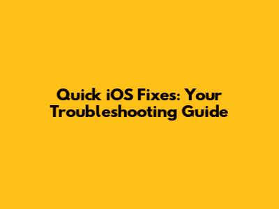 Quick IOS Fixes: Your Troubleshooting Guide