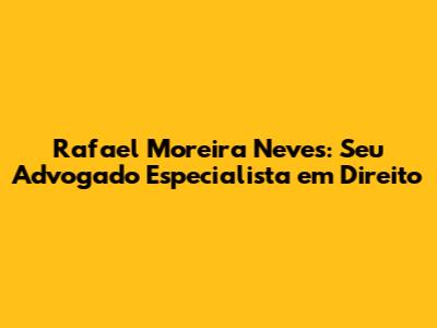 Rafael Moreira Neves: Seu Advogado Especialista Em Direito