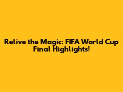 Relive The Magic: FIFA World Cup Final Highlights!