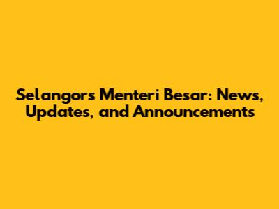 Selangor's Menteri Besar: News, Updates, And Announcements